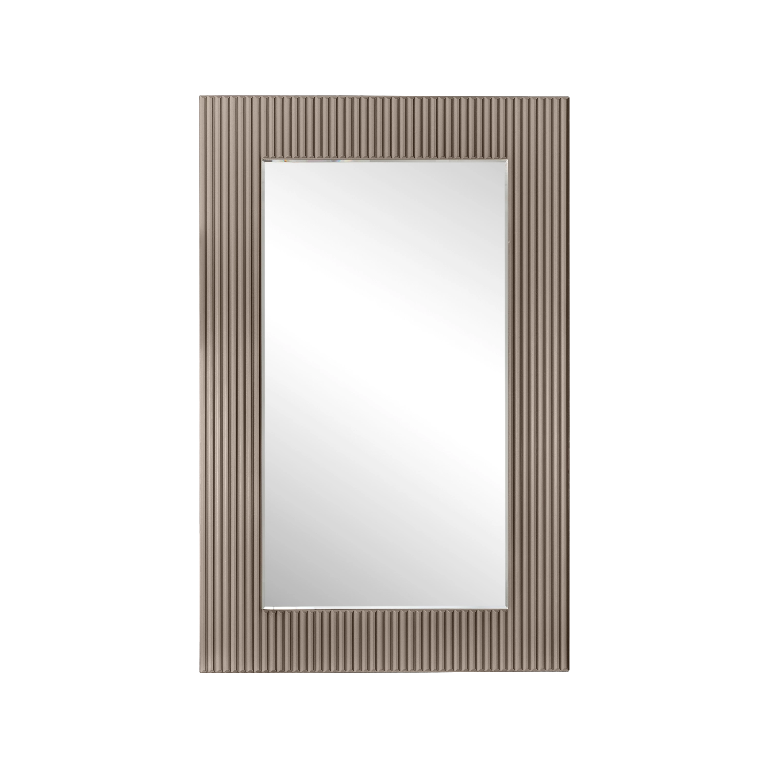 -Зеркало РМ/01 не имеет рамы, состоит из основания и зеркального элемента. Основанием данного зеркала является плита ЛДСП ,торцы облицованы металлизированной ПВХ кромкой в цвет под матовый хром. Кромка клеится при помощи клея расплав. Зеркальный элемент по мимо фацета имеет рельефный рисунок в виде 3-х полос выполненный при  помощи фрезеровки.